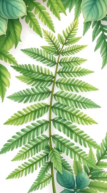 清新风格的插画,展现蕨类植物的绿叶和自然元素。
