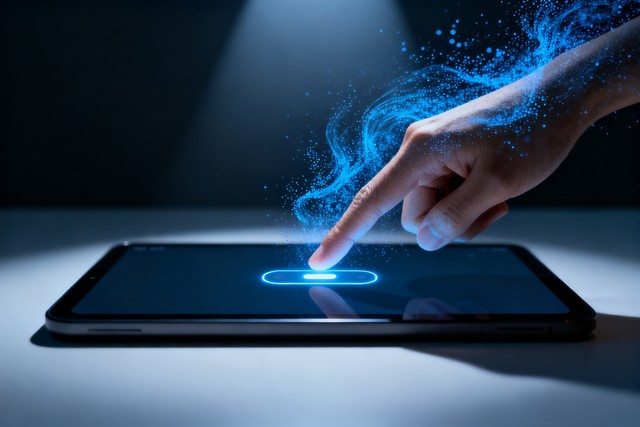 手指触碰科技屏幕蓝色光效
