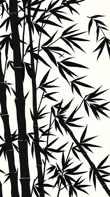 竹子的黑白剪影,线条勾勒出自然与简约中式元素。
