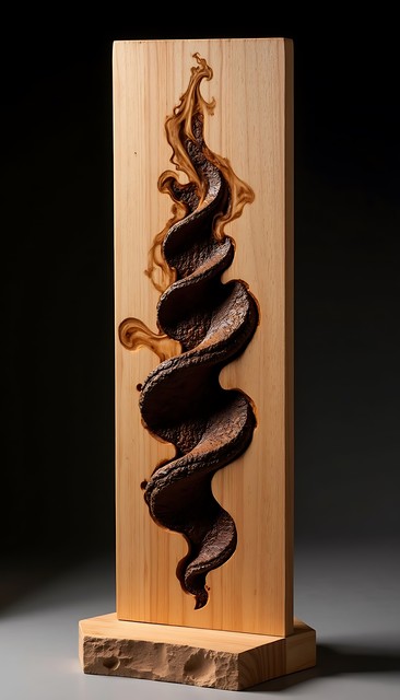 这是一款融合木雕艺术与自然纹理的立体火焰元素摆件。