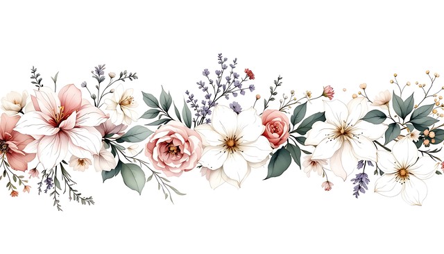 粉色与白色花朵搭配绿叶,自然元素点缀的花卉边框。