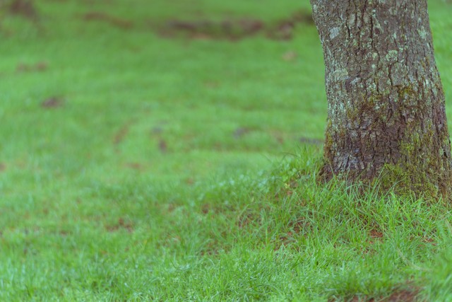 绿色草地上树木的树根