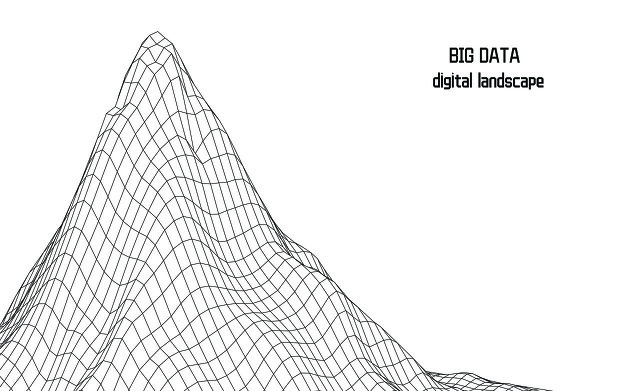 大数据概念的抽象矢量的三维数字地形,兼有人工智能概念的图形