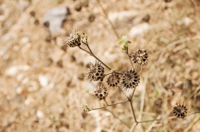 秋季干燥的苘麻果实