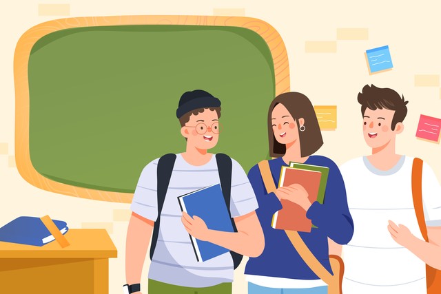在线教育新学期开学上学课程踏青旅游风景矢量插画