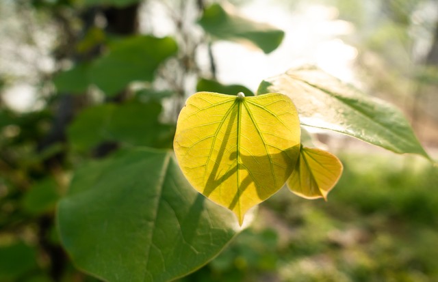 阳光照射下的逆光树叶