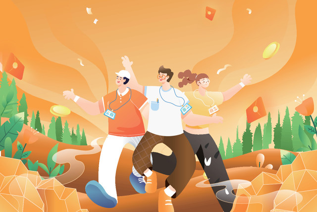互联网金融邀请好友商务招聘金币收益理财618电商促销活动背景矢量插画
