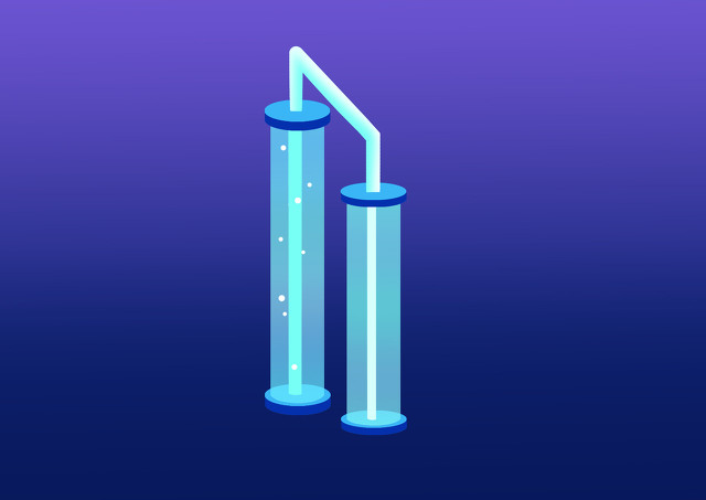 绘画了蓝色系2.5D科技光柱,整体以扁平插画的形式呈现。