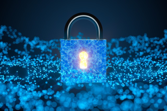 科技线条数字加密锁 3D渲染