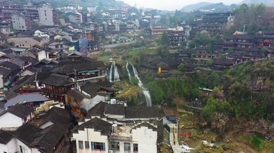 航拍湖南湘西矮寨德夯景区流纱瀑布