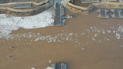航拍济南黄河出现流凌现象