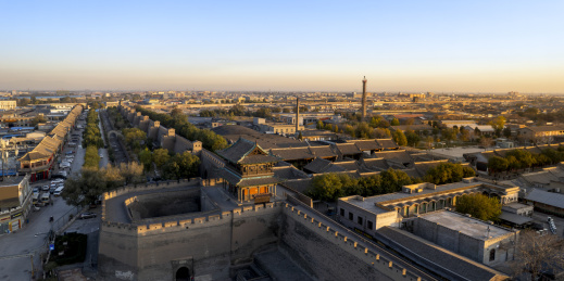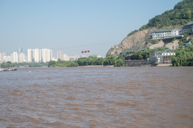 甘肃兰州地标黄河中山桥白塔山夏天早晨城市