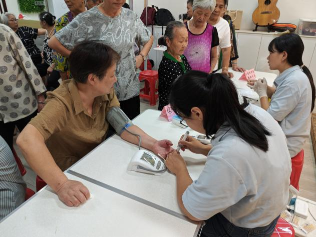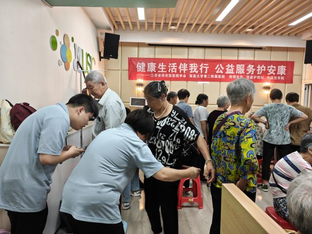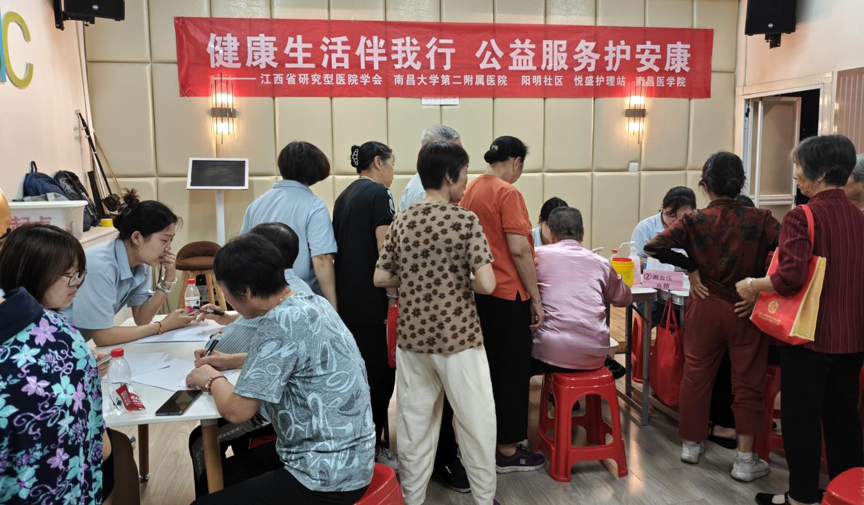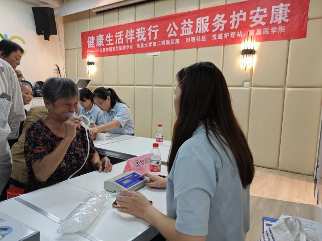 225年6月12日上午,江西省研究型医院学会在阳明社区邻里中心组织了一场公益服务,旨在为社区老年居民提供便捷、全面的健康评估与指导服务。此次服务活动由江西省研究型医院学会主办,得到了南昌大学第二附属医院、阳明社区、悦盛护理站的大力支持。