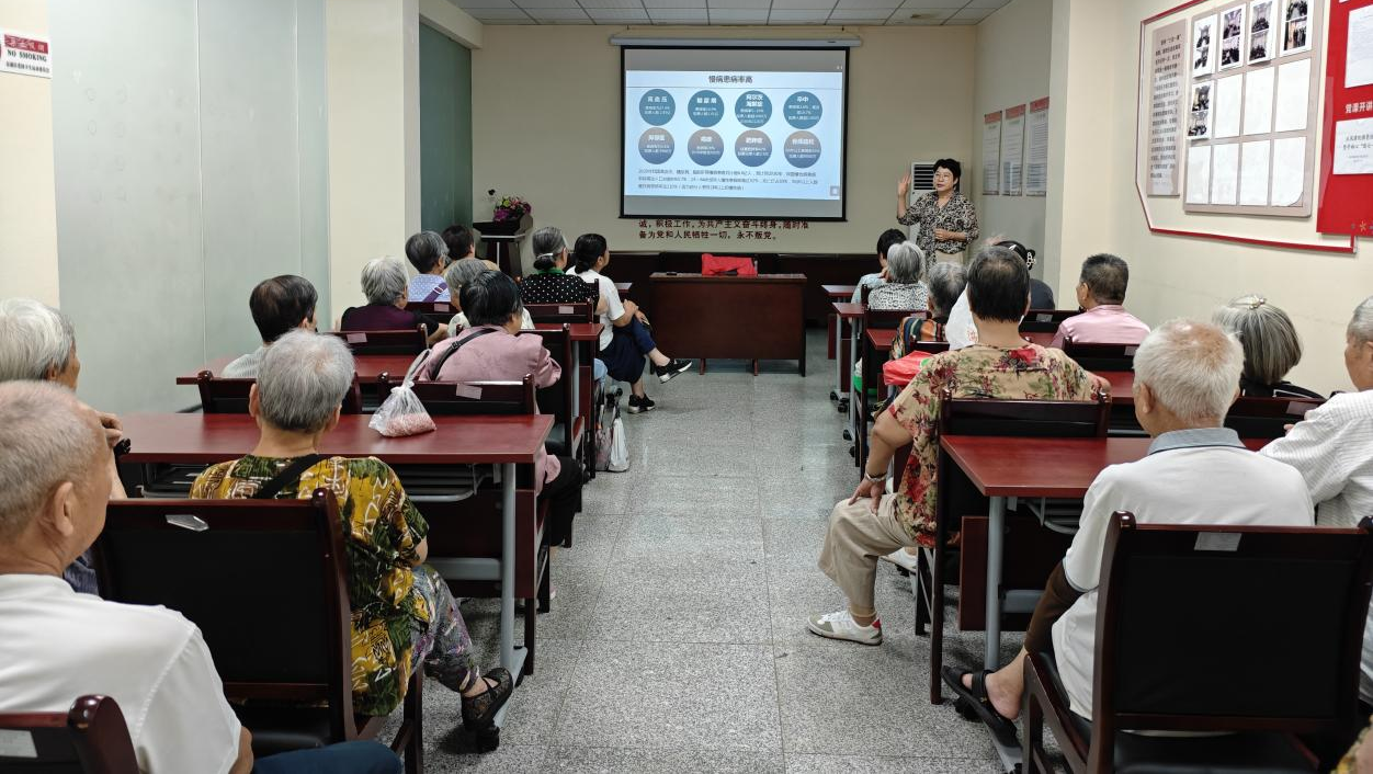 在公益服务开展前,江西省研究型医院学会副会长兼秘书长、研究员易应萍同志在阳明社区党员活动室主讲了关于老年健康评估及监测公益项目的讲座。易应萍同志从项目背景项目介绍、参与对象、项目流程、参与者获益、项目进展、团队介绍几个角度出发,深入浅出地向阳明社区的老年居民们介绍了老年健康公益筛查服务是如何通过联合多方力量,为老年人提供便捷、高效的健康风险评估服务。这一宣讲活动既体现了社会对老年群体的关怀与重视,也进一步增强了社区老年居民的健康意识,为接下来公益服务的顺利开展奠定了坚实的基础。