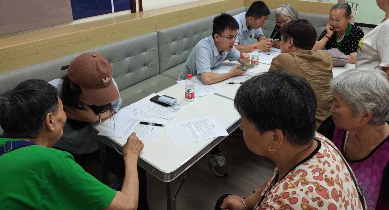 来自江西省研究型医院学会、南昌大学第二附属医院、洪干社区、悦盛护理站的工作人员以及医学专业志愿者,共同组建了一支兼具专业知识与良好沟通能力的志愿者队伍,踊跃参与了本次服务活动。活动现场,他们协助居民填写健康基本信息表,并开展健康风险评估,助力居民精准掌握自身健康状况。志愿者们亲切地与居民交流:“您好,最近身体有没有哪里不舒服呀?”“您日常爱不爱出门走走,参加些活动呢?”“您平时饮食上有什么偏好呀?”这些话语拉近了医护人员与社区居民的距离,为老年群体送去温暖与关怀,保障了活动的专业性、权威性与服务质量。