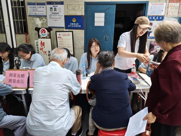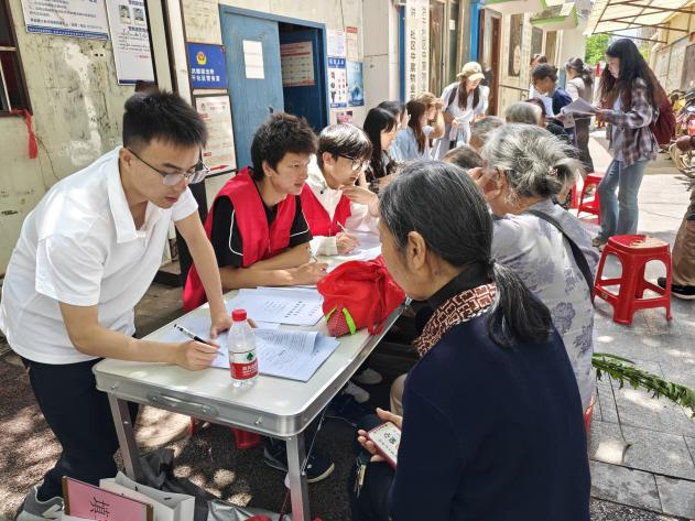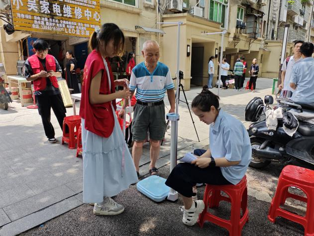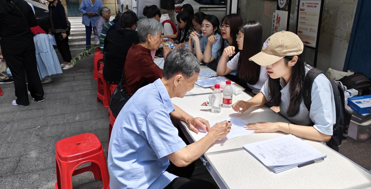 学会组织了一支既具备专业知识又拥有良好沟通能力的志愿者队伍。来自江西省研究型医院学会、南昌大学第二附属医院、洪干社区、悦盛护理站、南昌医学院的众多工作人员和医学专业志愿者积极参与了本次服务。在服务活动现场,他们帮助居民填写健康基本信息表,开展健康风险评估工作,以便居民更准确地了解自身身体状况。志愿者们亲切地询问居民:“最近身体有没有哪里不舒服呀,爷爷?”“您日常爱不爱出门走走,参加些活动呢?”“平时饮食上有什么偏好呀?”针对老人的回答,志愿者即时对其开展个性化科普。这些贴心的话语拉近了医护人员与社区居民之间的距离,为老年群体带来了温暖和关怀,也让他们对健康知识更加了解。专业人员与志愿者的踊跃参与,确保了本次活动的专业性、权威性以及服务质量。