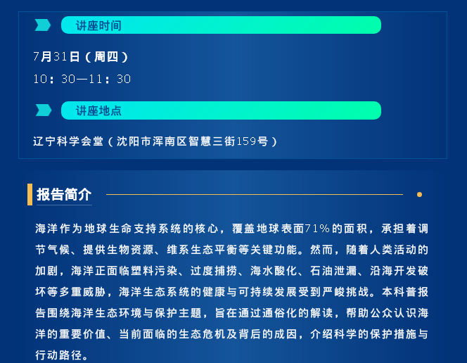 辽宁科学大讲堂第十一期——守护蔚蓝家园 海洋生态环境与保护