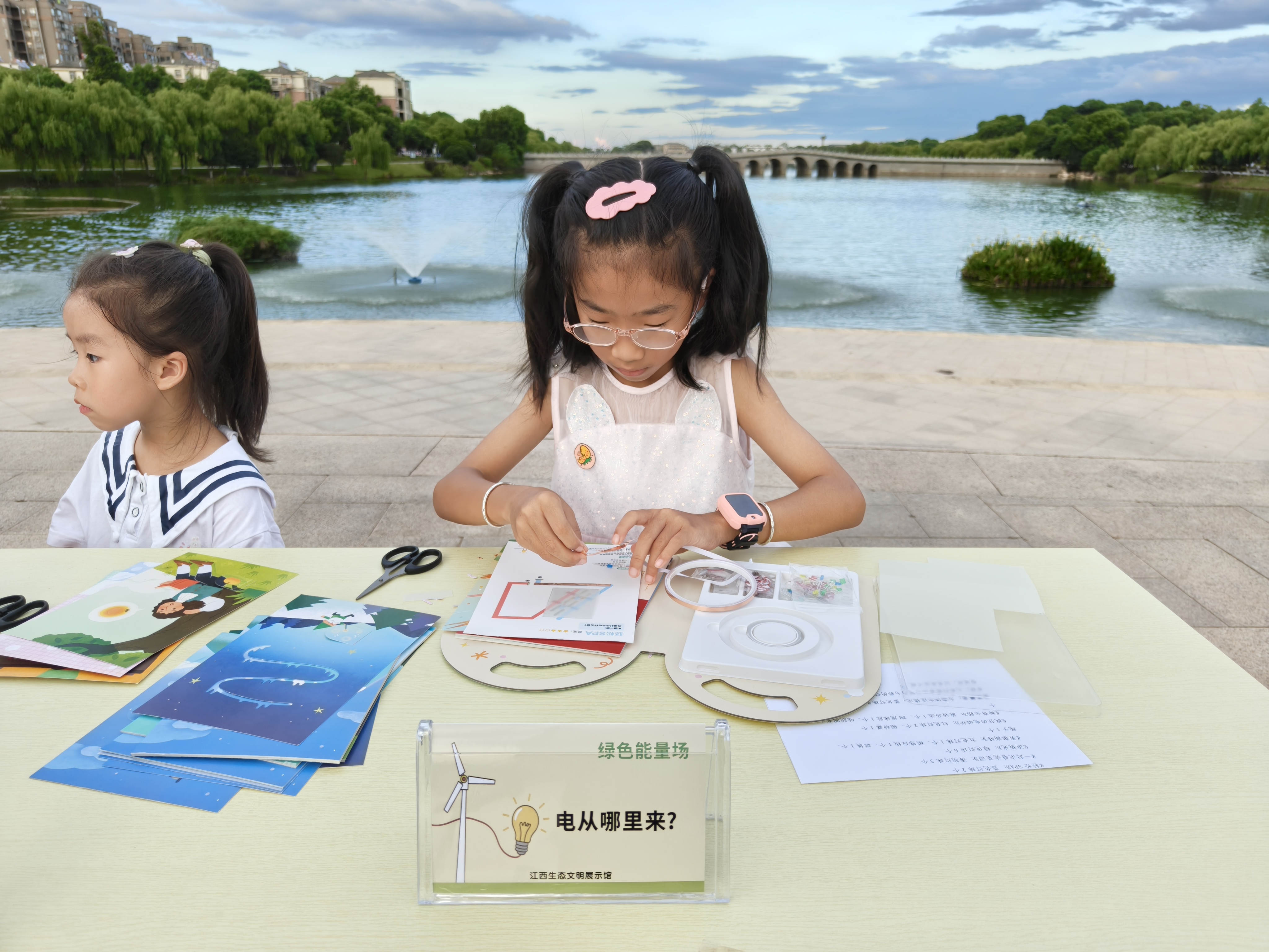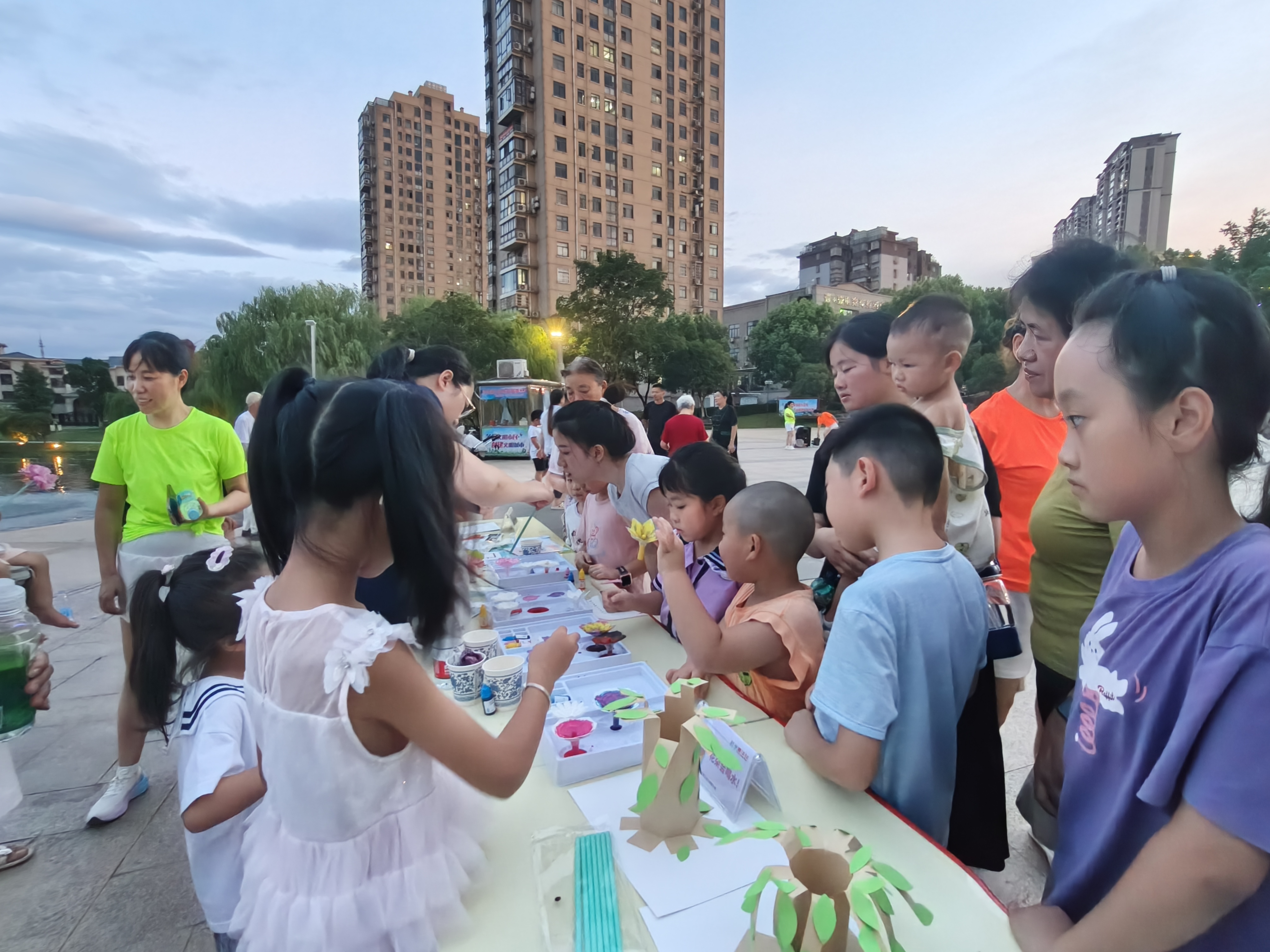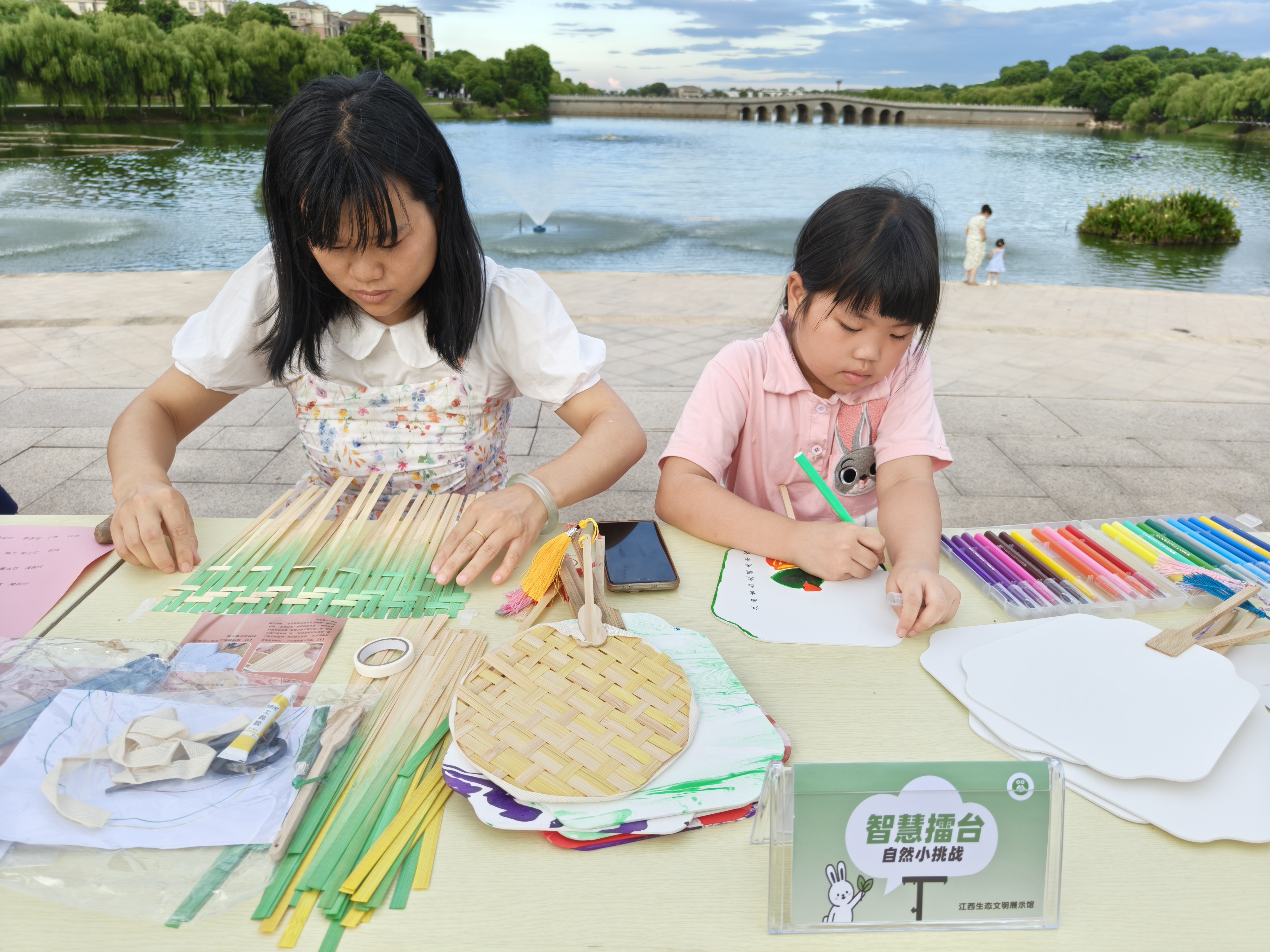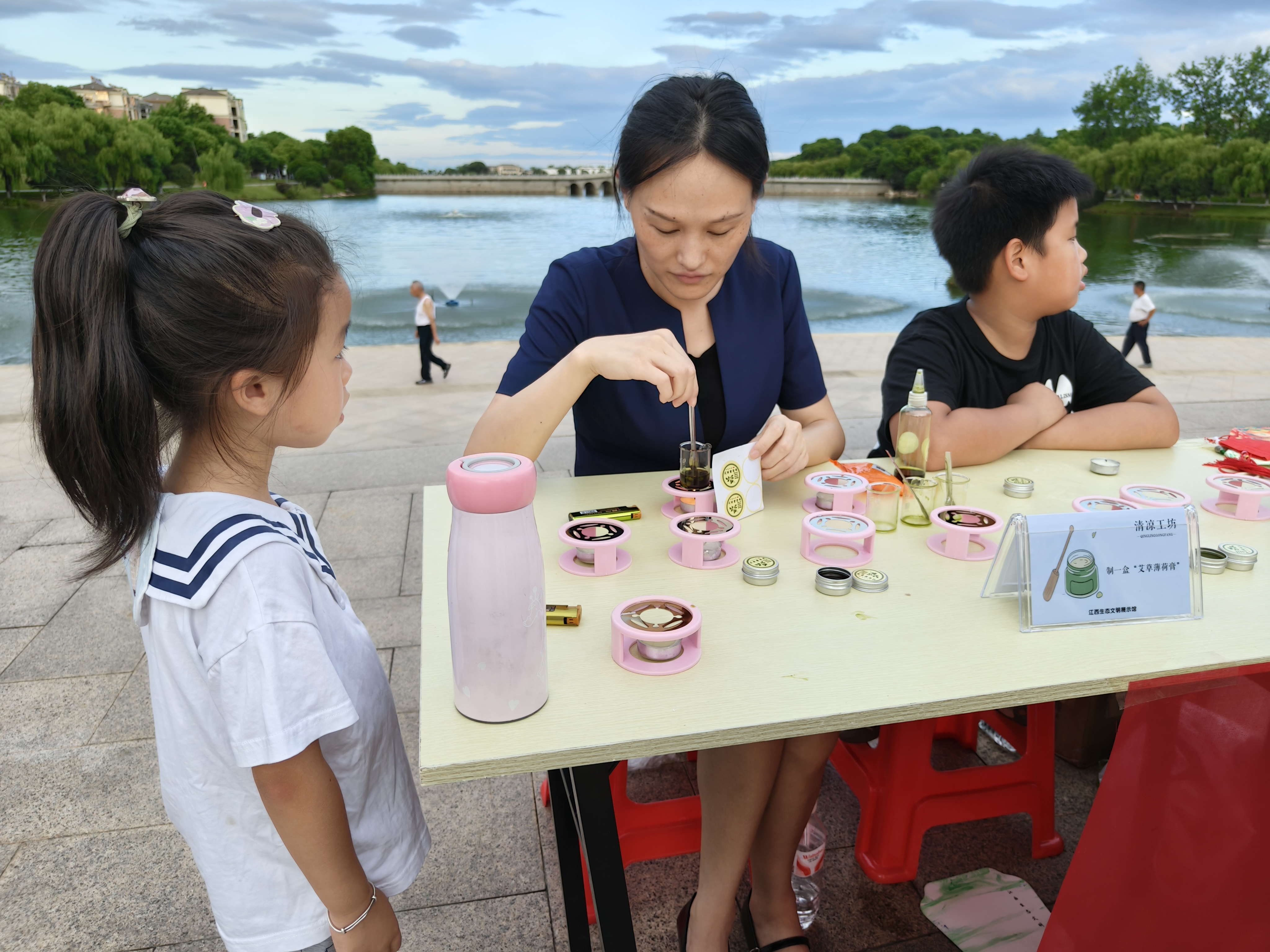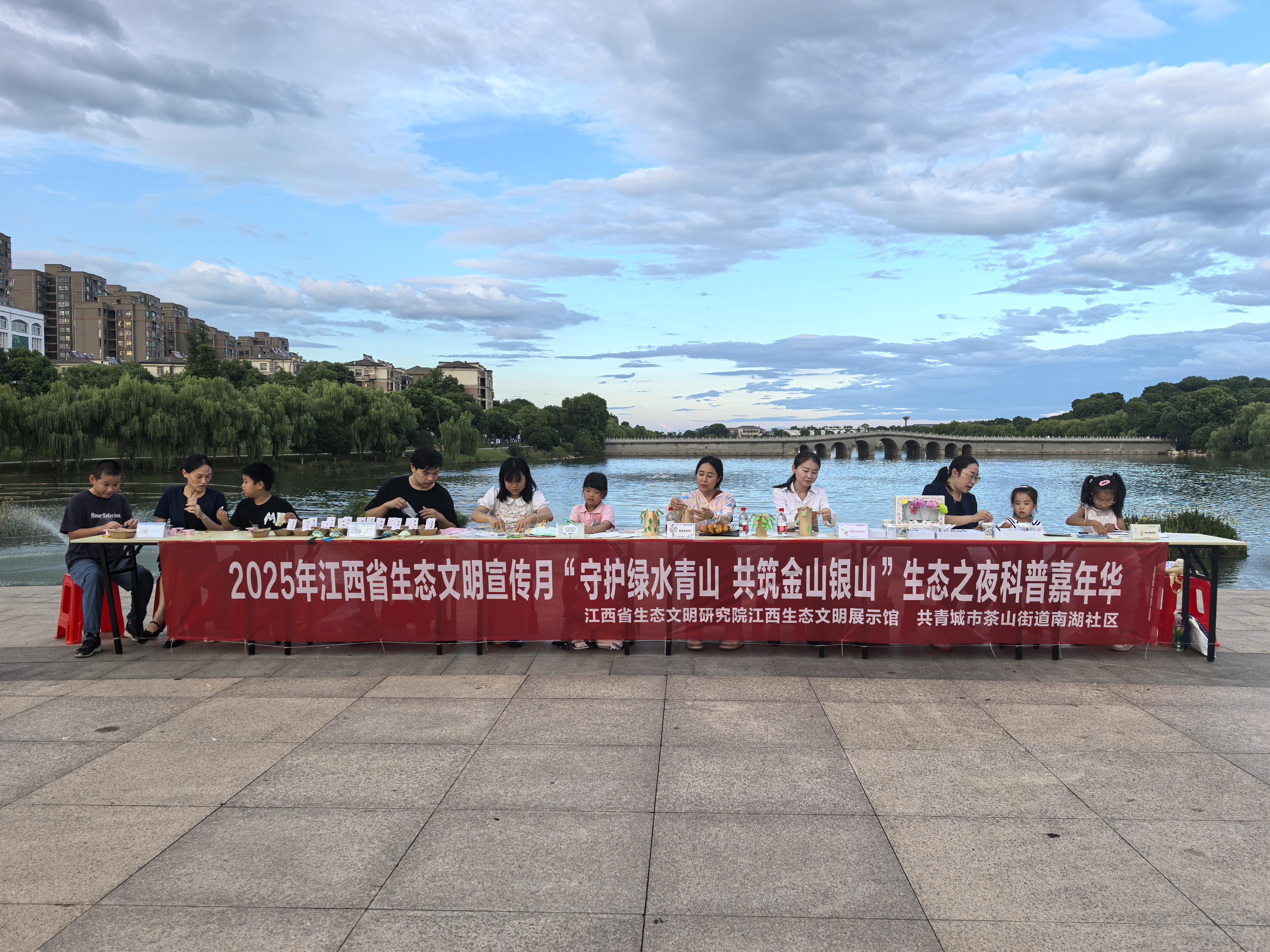 2025年8月14日傍晚6点半,共青城市珍珠湖广场华灯初上。市民们饭后散步时,被一场别开生面的“生态夜市”吸引驻足。江西省生态文明研究院江西生态文明展示馆联合共青城市茶山街道南湖社区开设六大生态文明体验区,现场人气爆棚,近千名居民动手实践悟生态智慧。
