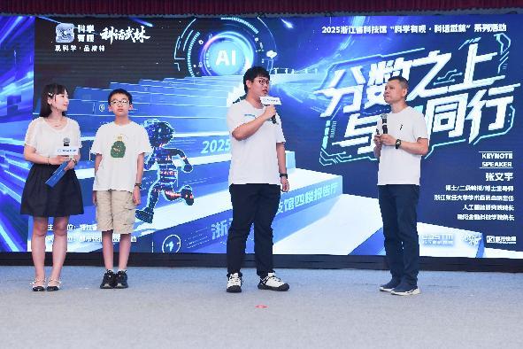 “我们总说‘分数决定未来’,但在AI时代,真正决定孩子能走多远的,是提问的能力、探索的勇气和跨界融合的思维。”8月24日,在暑假临近尾声的这个周末,刚刚荣获2025年度浙江省首席科学传播专家的张文宇教授在浙江省科技馆给大家带来了一场别开生面的科学脱口秀,这也是“科学有观·科话武林”系列活动的第三场。