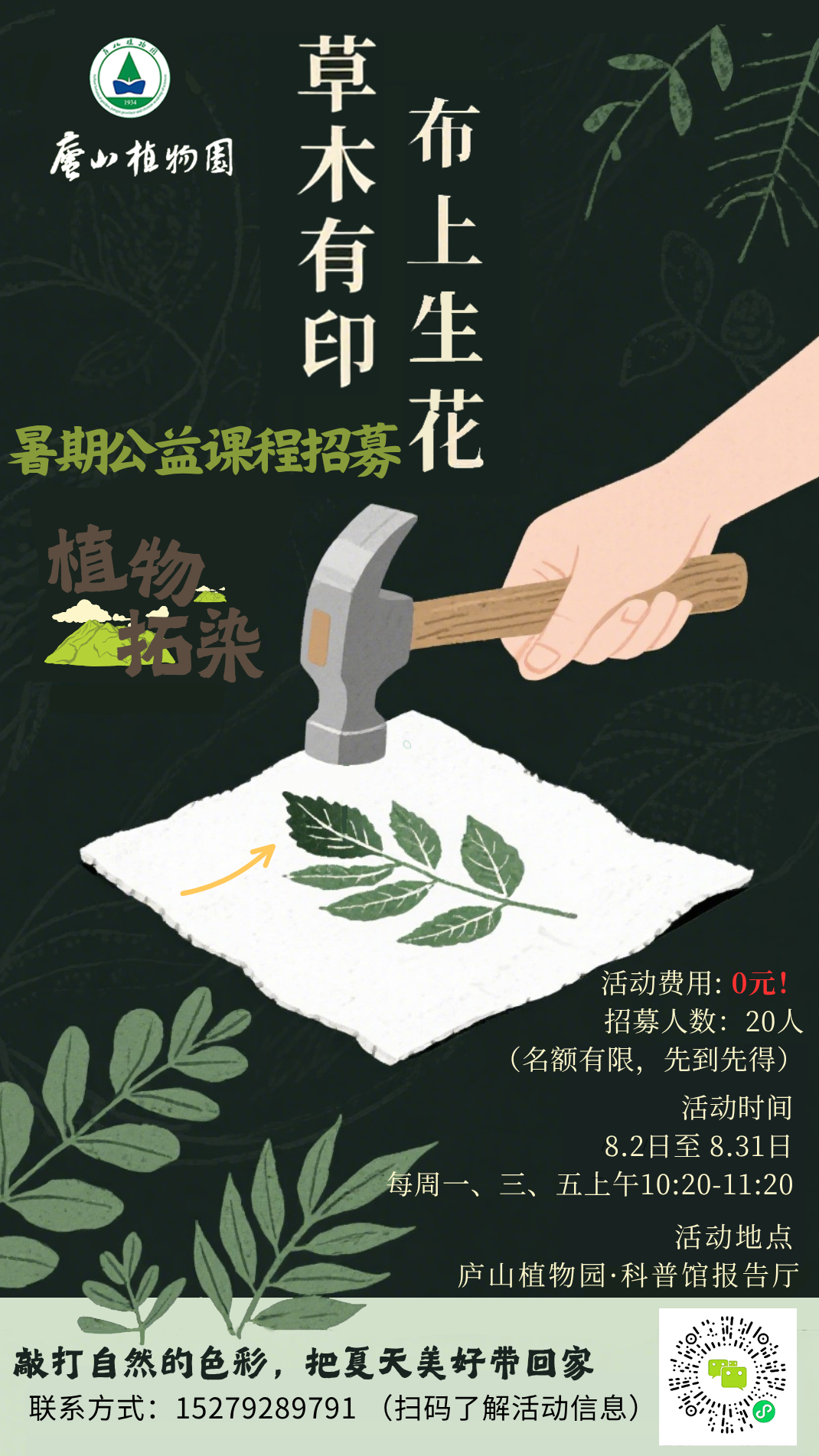集结地点:庐山植物园本部科普馆集合(每次活动前十分钟)