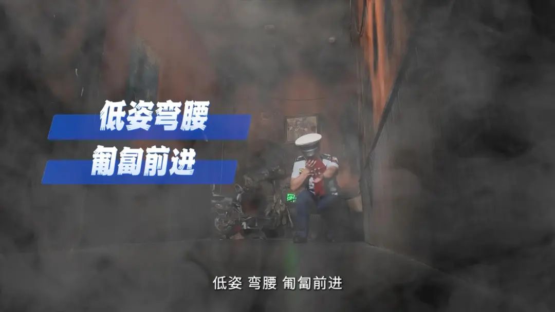 火场逃生环节,消防救援人员在模拟浓烟场景中,演示了“低姿弯腰匍匐前进”的动作要领,教授了室外着火、室内着火、楼梯被火封锁等不同场景的火灾逃生要点。