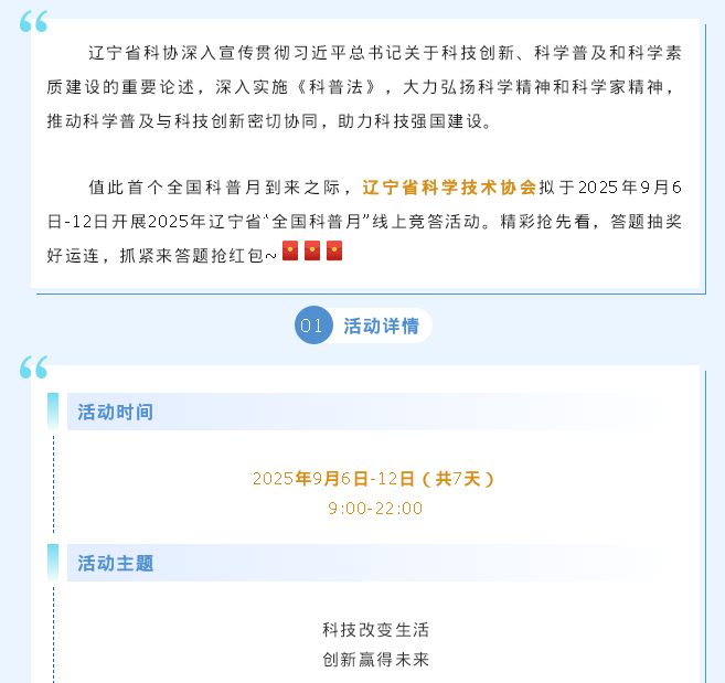 “科技改变生活 创新赢得未来”,2025年辽宁省全国科普月线上竞答活动来啦~