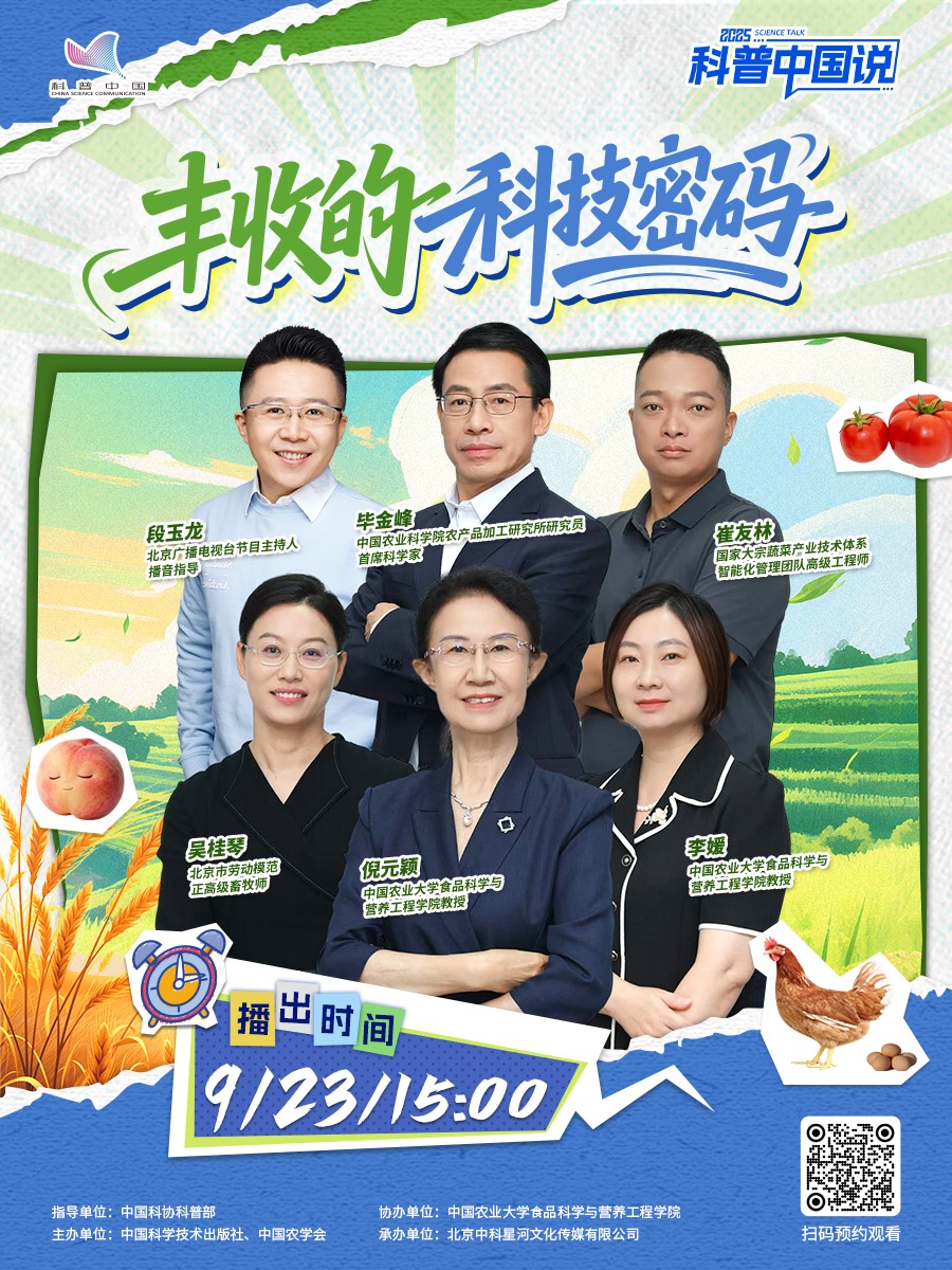 “春种一粒粟,秋收万颗子”,在第八个“中国农民丰收节”到来之际,科普中国说以“丰收的科技密码”为主题,邀请5位农业领域专家,讲述科技如何让农业变得更高效、更绿色、更贴近生活,带领公众了解从田间到餐桌的科技力量,感受现代农业为百姓生活带来的幸福滋味。
