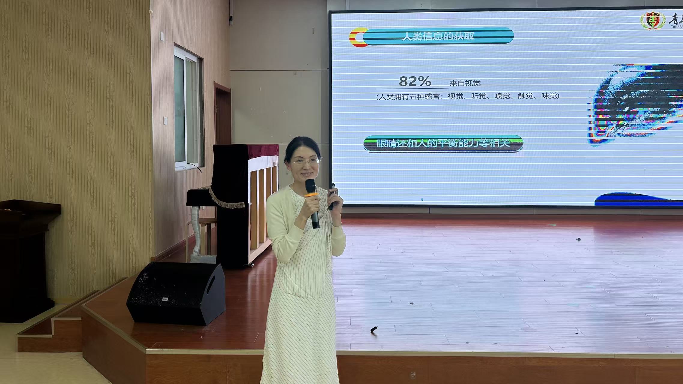 9月17日,全国科普月期间正值第十一个全国近视防控月,青岛市青年科学家协会主办的“2025年山东省科普能力提升——科普领航 青年讲堂”活动在怡海小学圆满举办。活动邀请了青岛大学附属医院眼视光学中心主任王青老师担任主讲嘉宾,以“爱眼护眼”为主题,为师生们带来了一场专业且易懂的爱眼护眼知识。