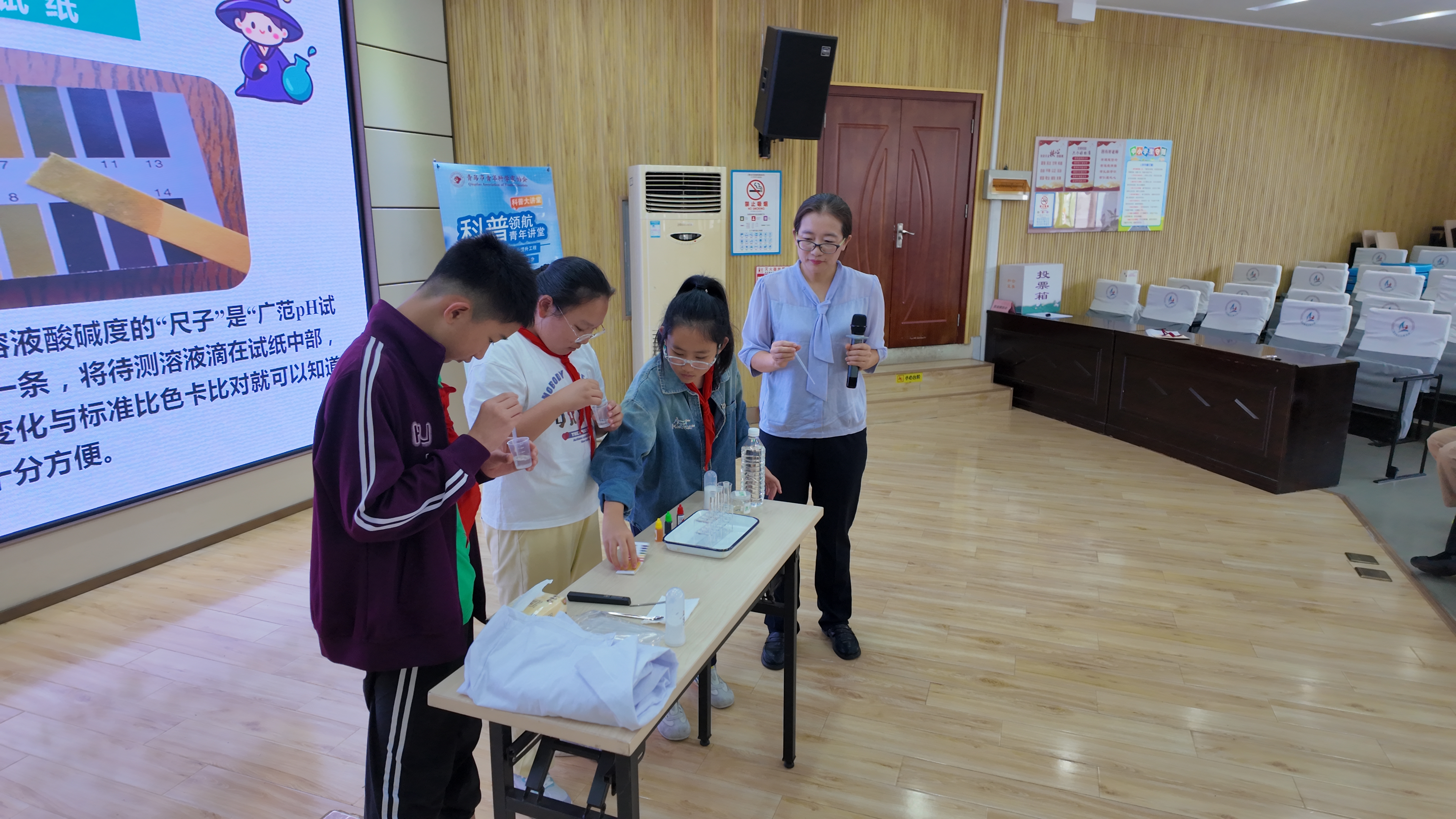 活动中,李老师通过多个趣味化学实验与同学们互动,现场气氛热烈。在“酸性值测试”小实验中,同学们动手检测实验材料的酸碱性,观察不同物质的颜色变化情况,直观理解了酸、碱、中性的概念;“彩色喷泉”实验通过小苏打与柠檬酸反应产生大量泡沫,模拟喷泉爆发,引来阵阵惊呼;“隔空灭火”实验则让同学们体验到二氧化碳隔绝氧气的灭火原理,大家踊跃参与,展现出极高的热情和探索欲。整个活动过程中,同学们都表现出了浓厚的兴趣和高度的积极性,在动手与观察中感受到了化学的魅力。