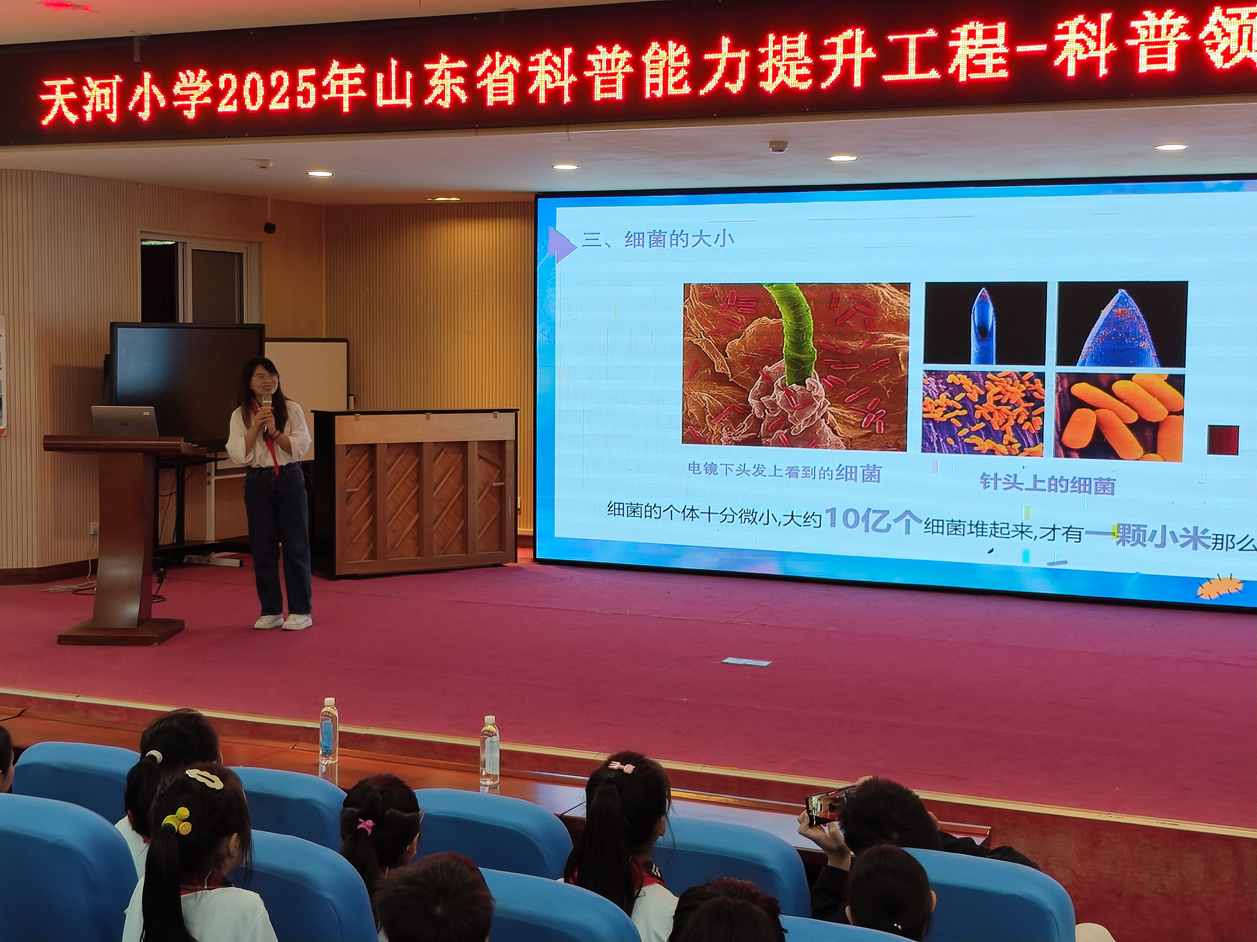 9月23日,由青岛市青年科学家协会主办的“2025年山东省科普能力提升——科普领航 青年讲堂”活动圆满举办。本期活动邀请了青岛农业大学副教授赵春彦老师走进天河小学,以“神奇的微生物”为主题,带领同学们认识奇妙的微观世界。