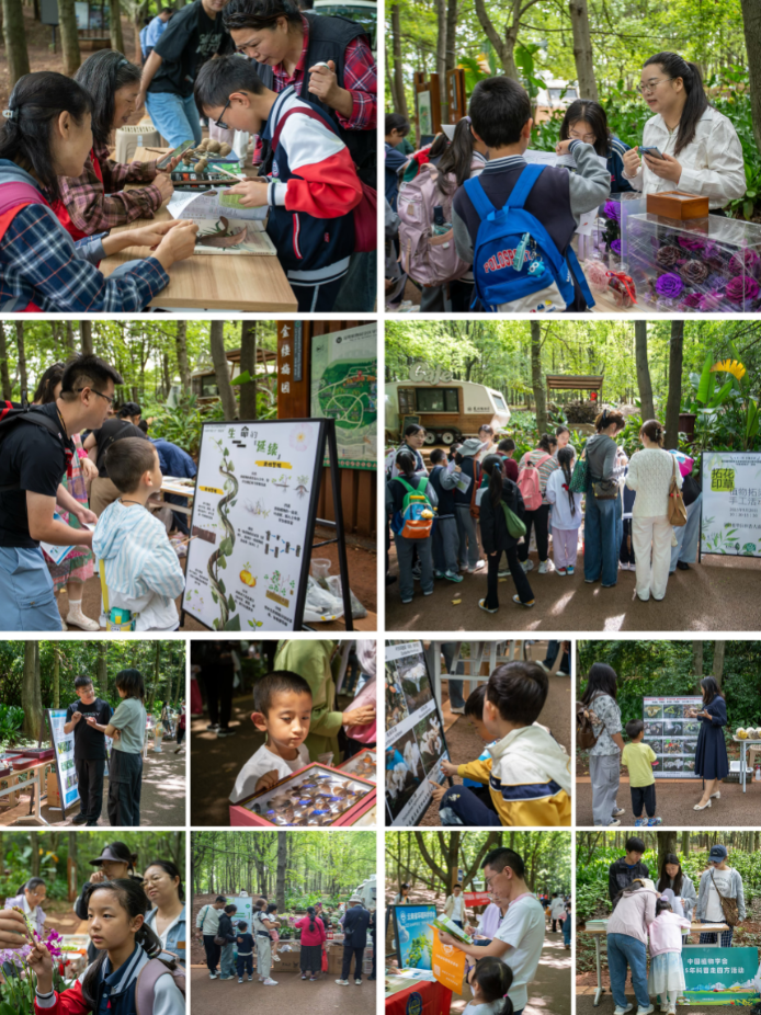 生态文明建设离不开科学技术。中国科学院昆明植物研究所、中国林业科学研究院高原林业研究所、云南省农业科学院花卉研究所用自身资源优势开展了相关生物多样性保护成果展示。昆明植物所“创益家·山川之友”研究生团队演示植物繁殖方式,让公众在玩乐中了解植物生命延续的奥秘;永生花实验室则展示色泽艳丽的永生花,让公众亲手体验植物拓染手工;昆明植物园党员先锋岗通过极小种群野生植物科研保育成果展示、植物物候监测观察咨询、园林园艺及入园导览服务咨询三个版块,为公众提供专业服务与知识解答,将党员的先锋模范作用与植物园的科研、科普职能深度融合。中国林业科学研究院高原林业研究所展示了从紫胶虫分泌物提取工业原料的过程,并解答昆虫养殖带动山区农户增收的疑问。云南省农业科学院花卉研究所展台摆满各色培育花卉,向公众普及科学养花知识,解答家庭养花技巧咨询。云南省野生菌保护发展协会向公众普及“不采摘、不收购、不加工、不食用” 的毒蘑菇防范知识,系统展示了毒蘑菇与可食用蘑菇的区别。云南省环境科学学会以“聆听自然的低语,守护生命的交响”为主题,开设生动的生态环境保护小课堂。云南省植物学会以“以学界之光点亮强国之路” 为主题,讲述吴征镒等植物学家的故事,激发了青少年对植物科学的兴趣,让公众从“知科学知识”走向“懂科学精神”。