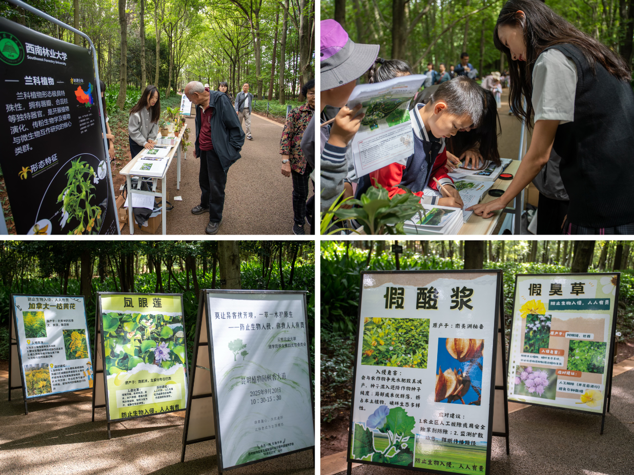 生态文明需要薪火相传。西南林业大学和云南农业大学理学院学生第四支部委员会的加入,同时为生态保护和人才培养注入了独特价值,他们是未来生态文明建设的主力军。西南林业大学的学生志愿者讲解兰花的多样性,让公众意识到保护野生兰花的重要性;云南农业大学理学院学生第四支部委员会的志愿者,则以生动形象的方式展示了“外来物种入侵”知识及守护国家生态安全的重要性。