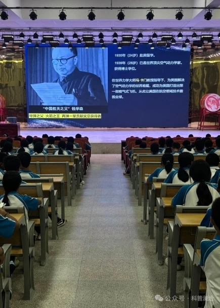 故事里的“追光者”,离我们一点都不远。没有枯燥的理论,没有遥远的讲述,讲座一开场,就用同学们熟悉的9.3阅兵式上的“大国重器”引出中国科学家,从东风导弹的精准制导,到装甲战车的硬核防护,将那些藏在钢铁巨擘背后的科研故事娓娓道来。在讲钱学森那段惊心动魄又满是赤诚的归国路,主讲者先从钱学森在美国的卓越成就讲起,让这份“放弃”的重量更显深沉,也让那份“归国”的决心更动人心魄。