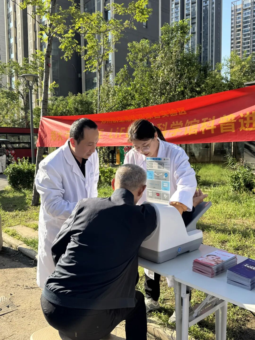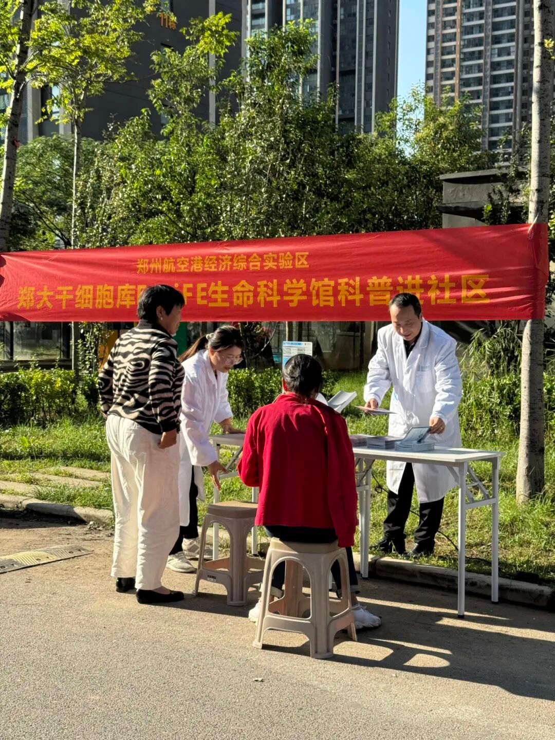 2025年“全国科普月”期间,为践行“科技改变生活 创新赢得未来”理念,营造社区科普氛围,9月25日下午,郑大干细胞库E·LiFE生命科学馆科普团队走进郑州航空港区龙祥社区二号院,开展主题科普公益活动。活动通过健康检测、知识宣讲等形式,将专业的干细胞知识送到居民身边,助力提升公众健康素养与科学认知。
