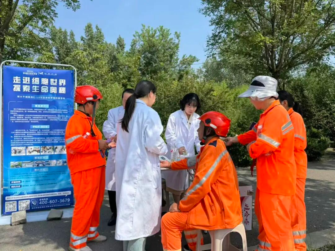 本次科普活动,是郑大干细胞库为响应2025年全国科普月主题"提升全民科学素质,夯实科技强国基础"号召,通过将生命科学前沿成果转化为大众听得懂、用得上的健康服务,旨在打破科技与民生的距离感。龙王办事处工作人员表示:"环卫工人是城市的美容师,他们的健康关乎城市运转。此次活动既送来了温暖,更在基层播撒了科学火种。"