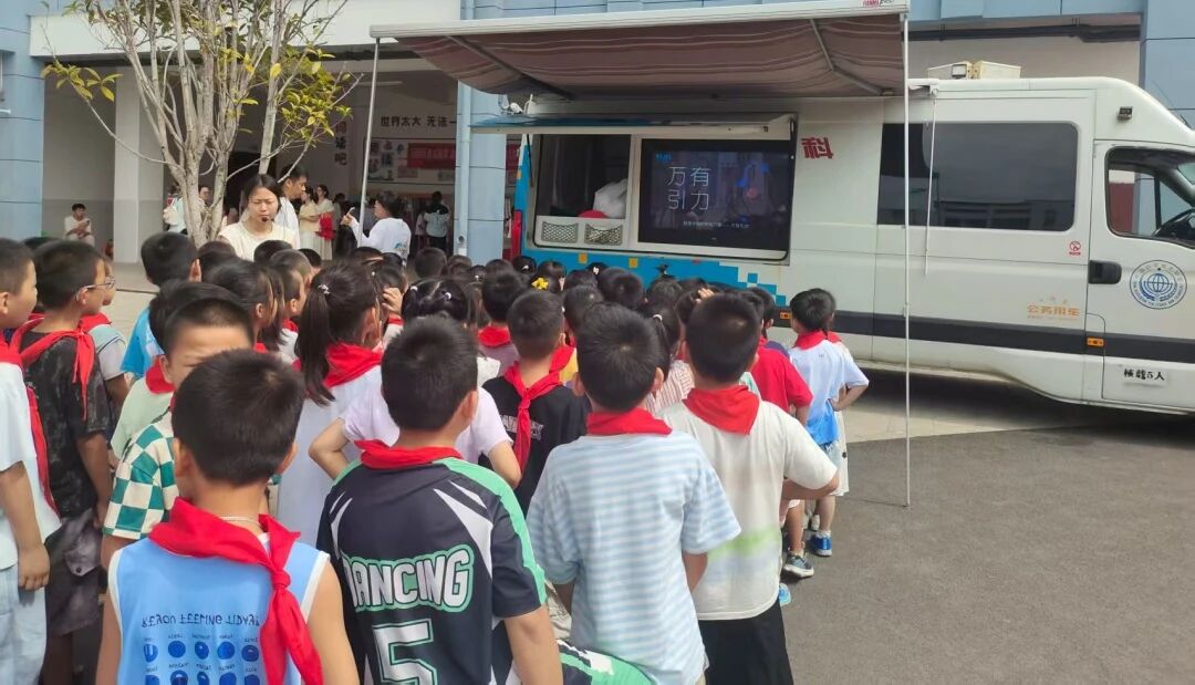 在科普大篷车展品体验环节,同学们有序操作、踊跃提问,对声光电磁、机械动力等互动展品表现出浓厚兴趣。集科学性、趣味性与互动性于一体的移动展教装备,让每一个孩子真切感受到:科技并不遥远,创新就在身边。