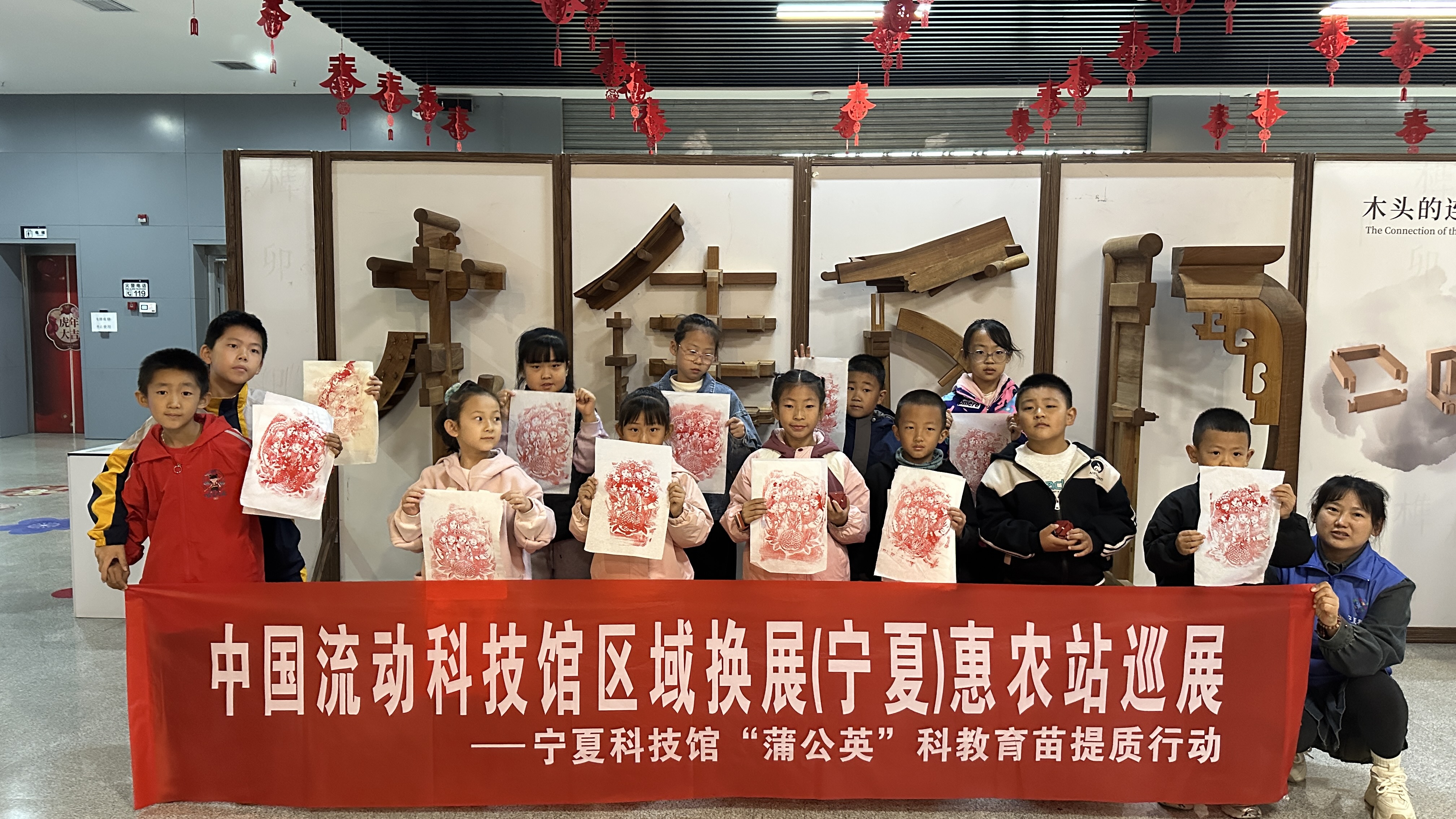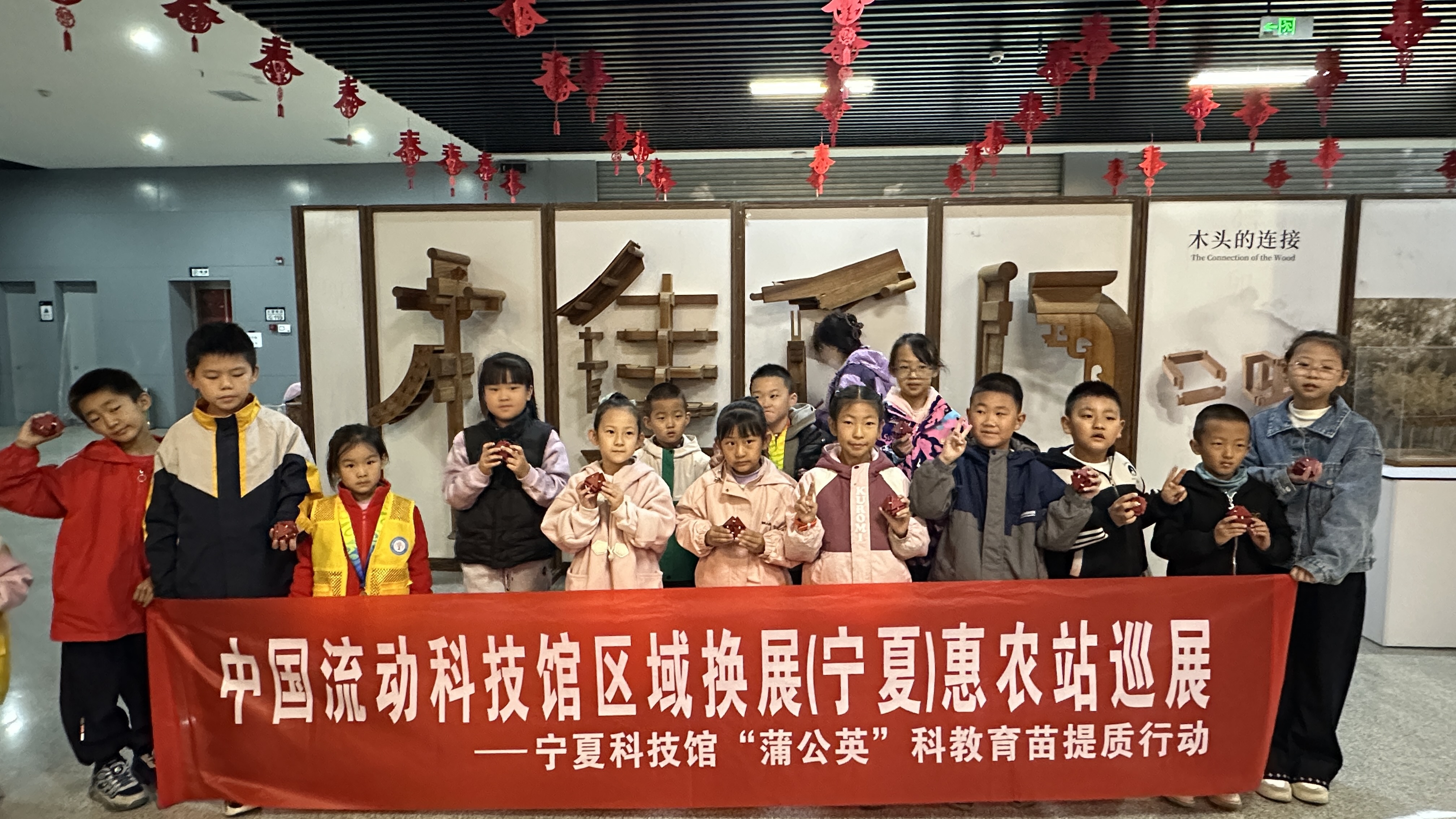 2025年10月18日,在宁夏科协的大力支持下,宁夏科技馆、惠农区科技馆联合组织开展的中国流动科技馆区域换展宁夏惠农站科普教育活动之《八面玲珑》《石榴籽拓印里的团结密码》;科学家精神活动之《建筑大师—张锦秋》《中国近代建筑之父-梁思成》。活动现场吸引了多名青少年参与互动体验,科普老师带领同学们一起探索榫卯的奥秘。