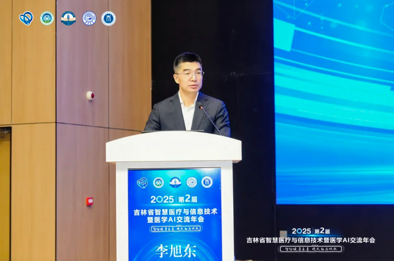 在领导致辞环节,吉林大学中日联谊医院党委副书记李旭东首先代表承办方致欢迎辞,并提出期望:“做厚“创新土壤”,推动更多AI科研成果在临床场景中落地应用;打通“应用链条”,消除信息孤岛,让数据发挥更大效能;建强“人才梯队”,培养更多既懂医学又懂数据的复合型人才。一起推动吉林的智慧医疗事业走出新步伐、迈上新高度。”