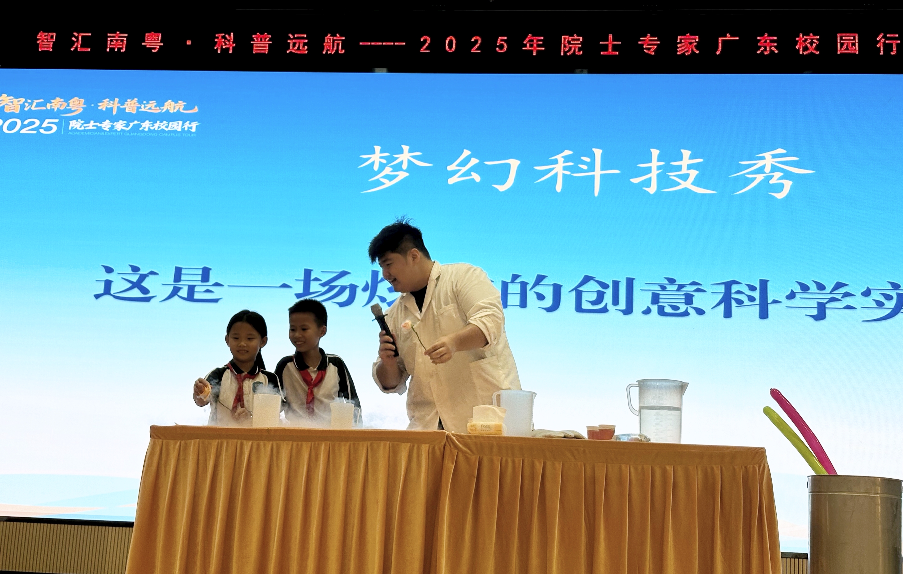 本次活动由广东省科学技术协会、中国工程科技发展战略广东研究院联合主办,广东省科学技术普及志愿者协会、佛山市科学技术协会、佛山市乐从镇宣教办、华南师范大学附属乐从小学共同承办。活动现场还举行了充满趣味的“梦幻科技秀”,每一个实验背后,仿佛都在呼应“科学始于好奇,最终落脚于人类福祉”的深层内涵,让科技之美与人文之暖相得益彰。