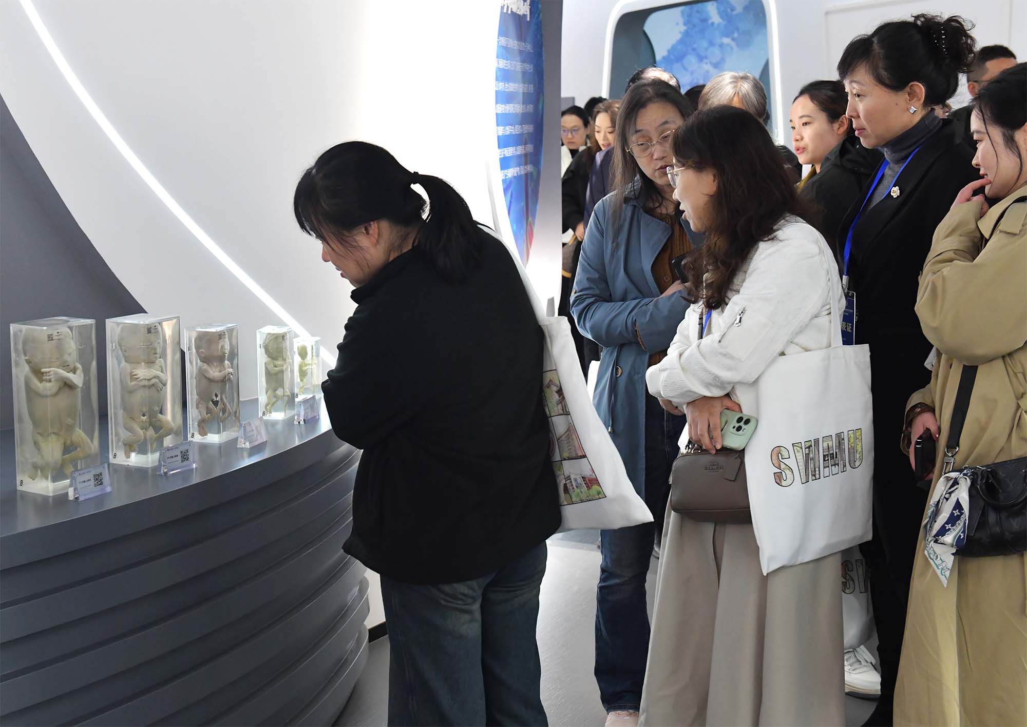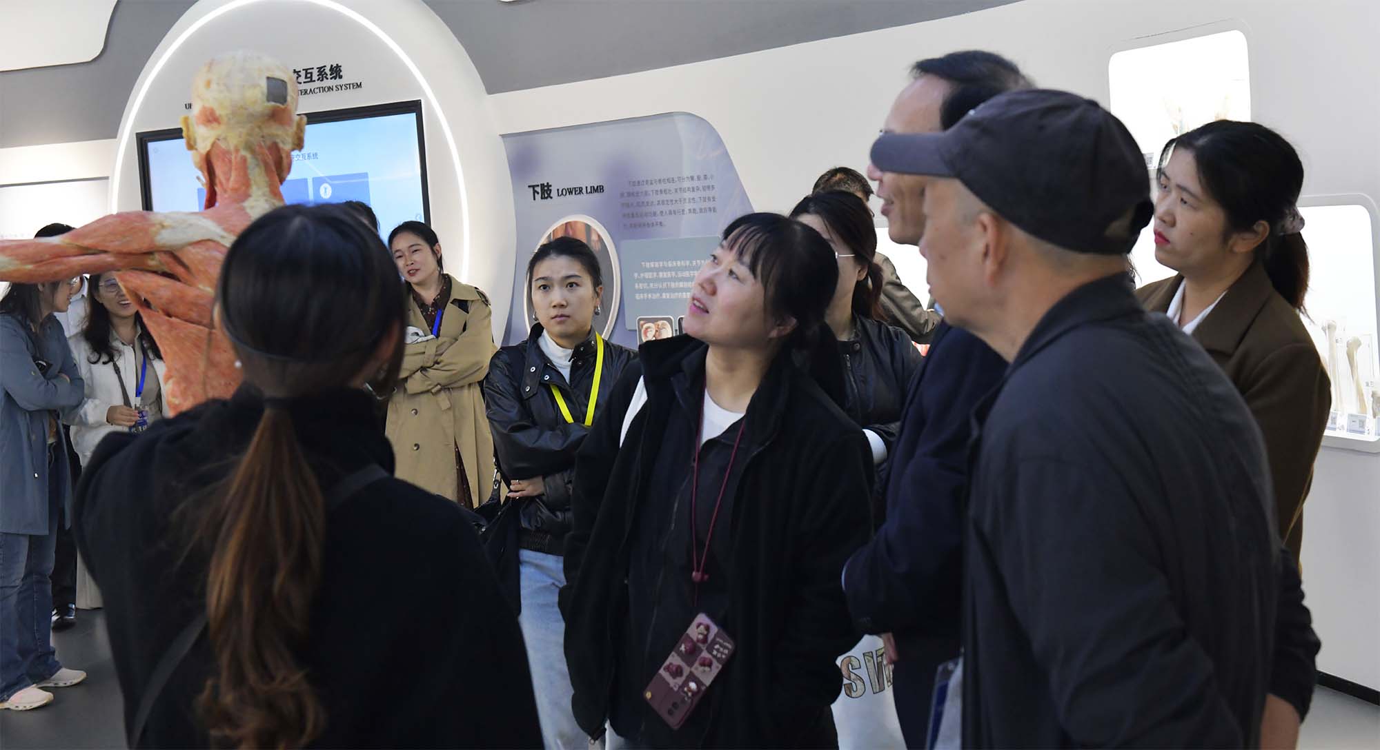 在参观过程中,西南医科大学专业讲解员邱瑾引导专家团参观了“生命起源”“人体奥秘”“生命健康”与“生命升华”四大展区,着重阐释了塑化标本、实物标本以及互动展示系统等馆藏资源在设计临床教学、启发学生思维方面的独特价值。
