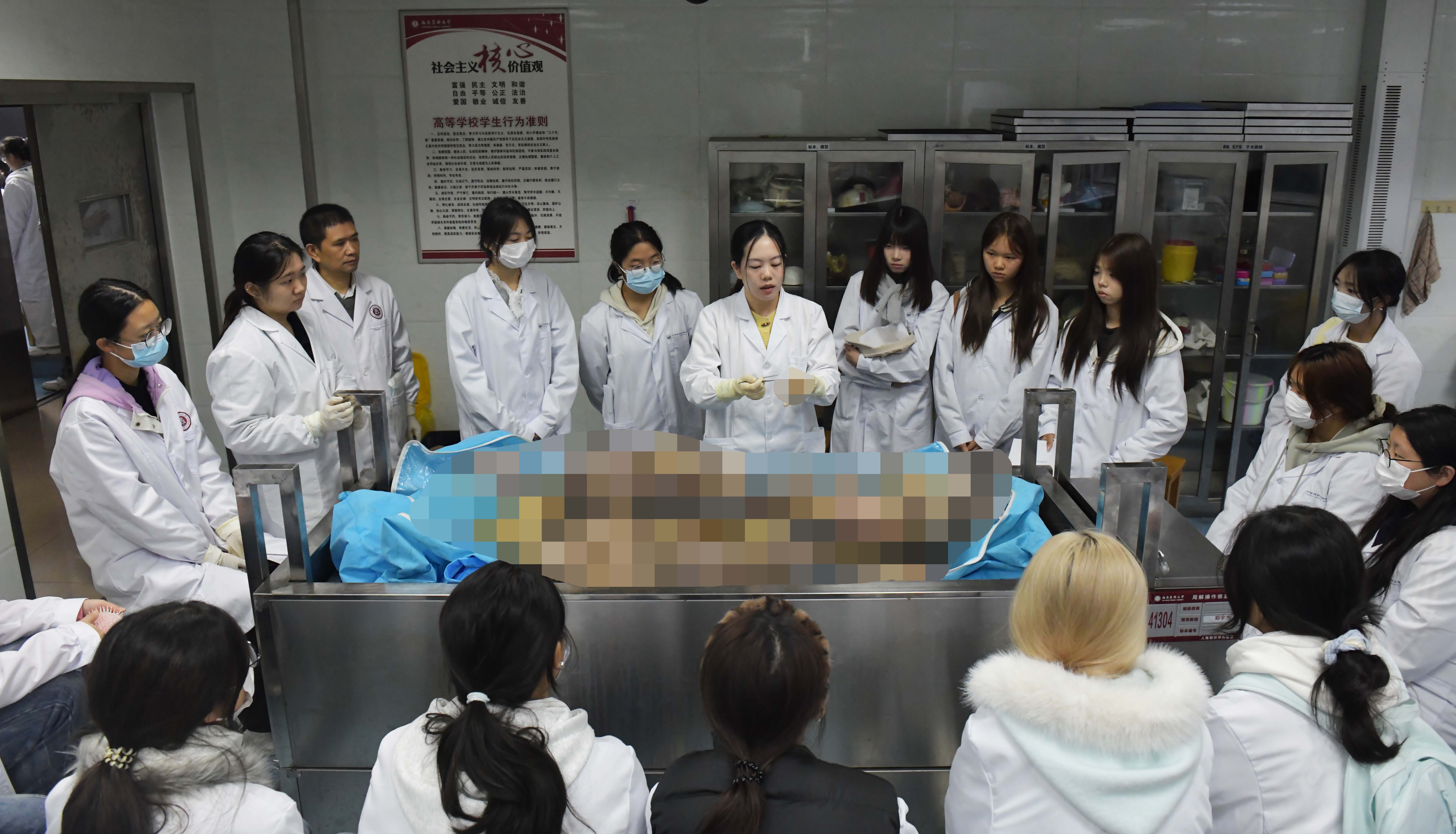 在运动系统实验室,真实的关节与肌学标本清晰地揭示了运动中关节与肌肉的深度配合,使学生们对整个运动系统有了更为直观的深刻认知。步入呼吸系统实验室,将整个呼吸系统的精细结构直观呈现,引发了学生们的浓厚兴趣与深入思考。整个研学过程中,同学们始终保持高昂的学习热情,围绕展示内容与带队教师积极互动、提问交流。同学们都认为在研学活动中收获巨大:不仅巩固和拓展了课堂所学的医学理论知识,更增强了对专业领域的感性认知,深刻领悟到医学科学对于守护人类健康的神圣使命与重大价值。