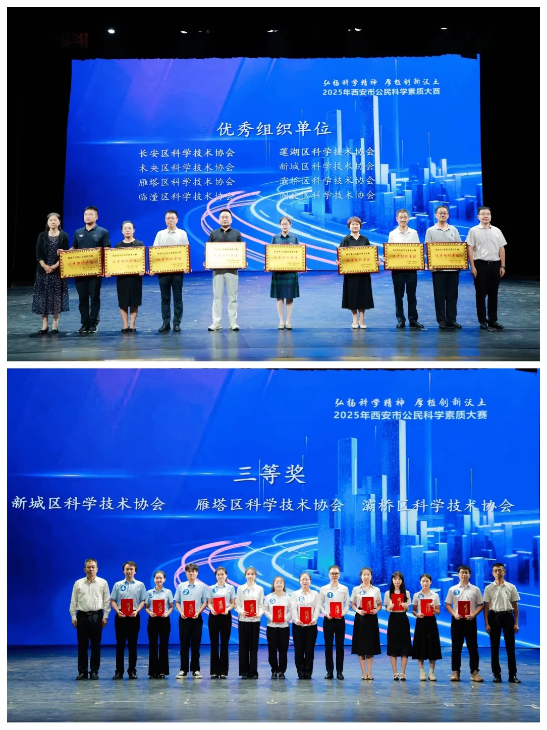 上午的复赛中,雁塔区选手凭借扎实的科学知识储备和稳定发挥,以第三名的优异成绩成功晋级决赛。下午,在决赛赛场上,面对更为激烈的竞争,我区选手顶住压力、沉着应战,在知识问答、风险抢答等环节中展现出良好的科学素养与团队协作能力,最终再度斩获三等奖的好成绩。此外,雁塔区科协因在赛事组织、选手选拔、赛前筹备等工作中表现突出,被授予“优秀组织单位”称号。