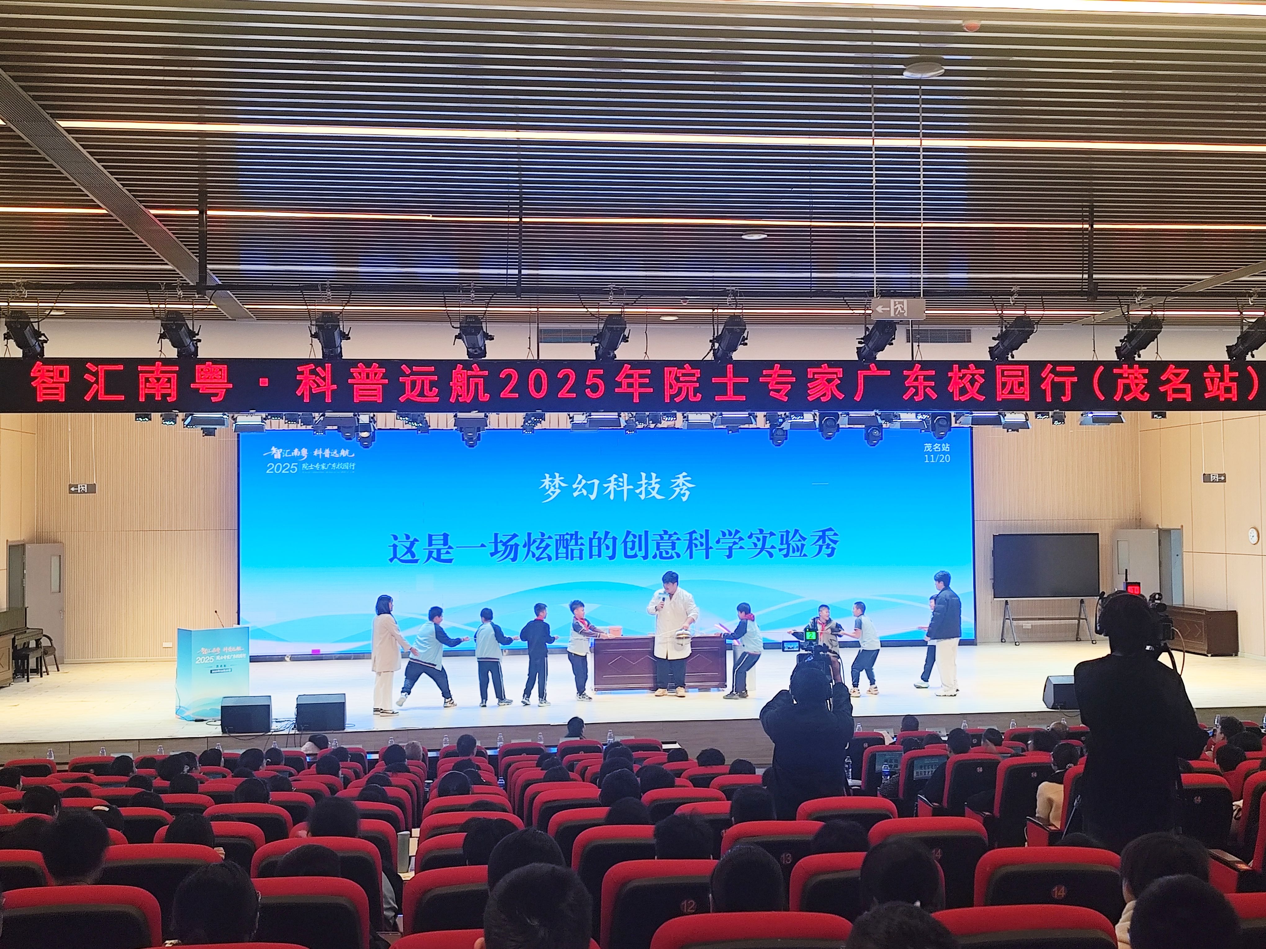 2025年11月20日上午,“智汇南粤·科普远航——2025年院士专家广东校园行”茂名站启动仪式在华南师范大学附属茂南实验学校隆重举行。活动由广东省科学技术协会、中国工程科技发展战略广东研究院联合主办,广东省科学技术普及志愿者协会、茂名市科学技术协会、茂名市教育局、中国联通广东省分公司科协等单位共同承办,广东省研学旅行协会、广东省青年科学家协会等单位支持协办,旨在推动科学普及走进校园,激发青少年科学兴趣,培育未来科技创新人才。
