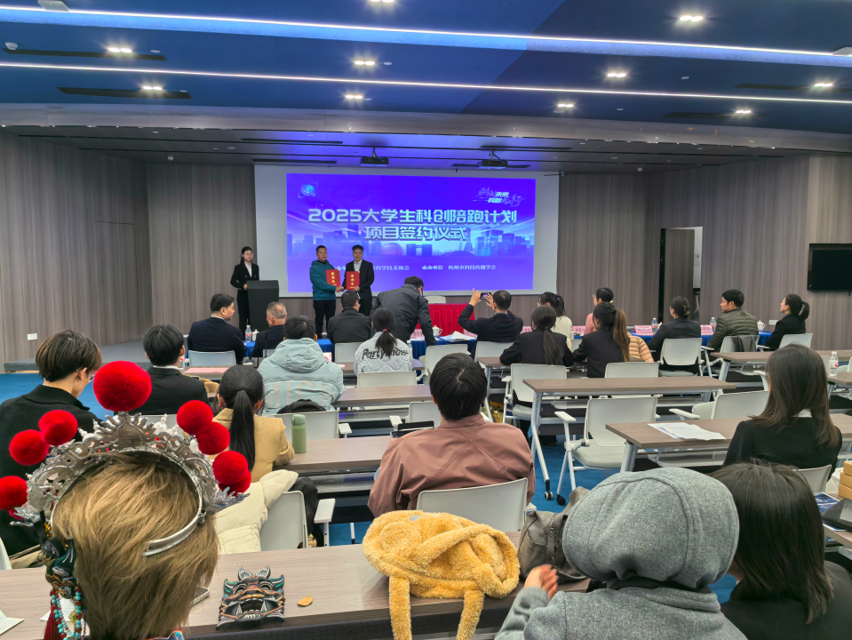 活动现场举行大学生科创陪跑计划项目签约仪式,杭州笕智科技服务有限公司、浙江伟光融和旅游文化发展有限公司两家优质企业与大学生创业团队达成合作共识并现场签订合作协议。