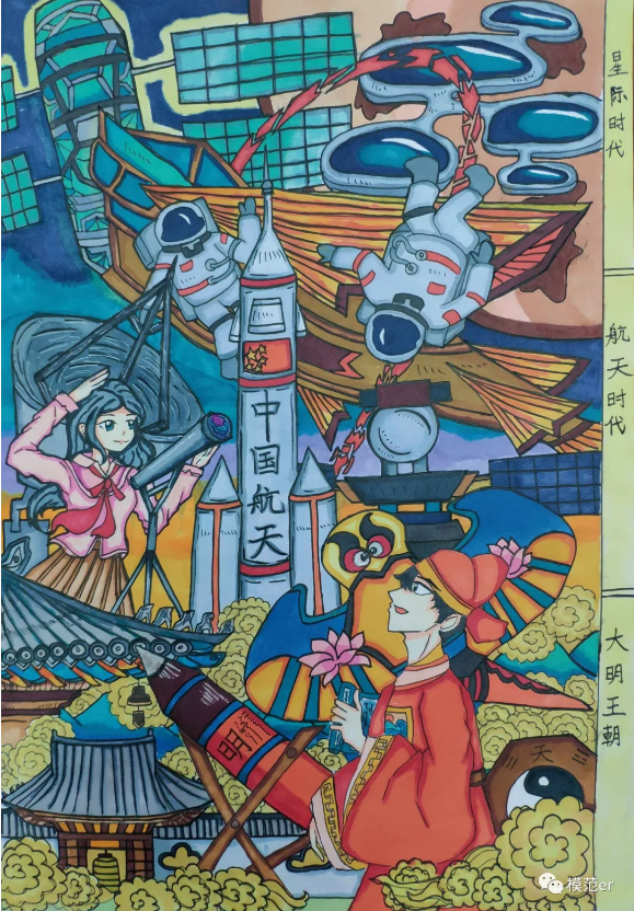 在吴老师的精心指引下,我和韩玉莹同学克服疫情之下的重重困难成功寄出作品并分别获得了特等奖和优秀奖的好成绩!我的内心十分激动,两次比赛都获得了不赖的成绩,这是我没有想到的。我原本只是参与,最后能为全国航空特色学校增光添誉,让我感到十分荣幸。通过这两次参赛,让我大致了解了航天技术日新月异的变化和航天科技为推动人类社会进步做出的杰出贡献,以及近几十年来中国航天事业从白手起家到领先世界的伟大飞跃;其次,这次比赛让我获得了提升自己绘画水平的机会,也让我将自己的爱好上升到了更高的境界,为学校荣誉尽一份力,也为人类航天技术发明的参考尽了一份力。同时,我明白了做任何事情都需要保持最初的严谨, 不能因为熟练而掉以轻心,否则将会出现不可挽回的损失。最后,我认为国家研发新型科技产品的过程并不是事不关己的,虽然我们目前还不能为国家科技事业做出伟大贡献,但我们可以通过这种参赛方式来为国家提供科学方案以及表达对国家航天科技成就的认可,作为高中生,了解并支持国家科技事业是万万不可或缺的。最后,我再次感谢为我创造这次参赛机会的学校,在比赛前夕不断提醒和指点我的吴德芬老师,以及在背后默默支持我的父母和同学们,能够两次获得荣誉,这离不开吴老师对我的耐心指导和对于作品要求的严谨心态。我会带着大家的赞许和鼓励,更加努力提升自己的绘画水平,争取在下一次比赛继续获得佳绩,为学校添光彩,为国家做贡献,成为一名学习才艺两不误的新时代新青年。