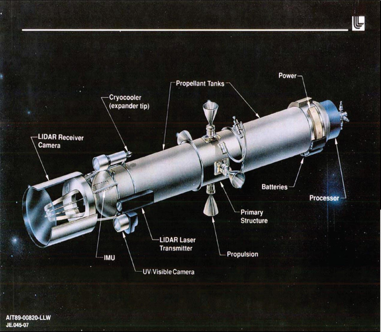 在“星球大战”计划的支持下,美国曾在20世纪80年代研制过“智能卵石拦截弹”和“外大气层拦截器”等天基动能反卫星武器。前者长0.9米,直径10~13厘米,由导引头、高精度制导系统、惯性测量装置、数传通信系统、推进系统和弹头母舱组成,其中弹头净重仅为2千克。它可从航天器上发射,依靠火箭发动机推进高速动能杀伤拦截器直接碰撞目标,并在1990年首次进行亚轨道拦截空间飞行目标的试验。后者通过拦截器本体直接碰撞杀伤目标,拦截弹头质量为78千克,前端是红外导引头,为扩大拦截器杀伤机构的横剖面,采用了中心可展开的杀伤增强机构,展开直径0.94~3米,重5.8千克。