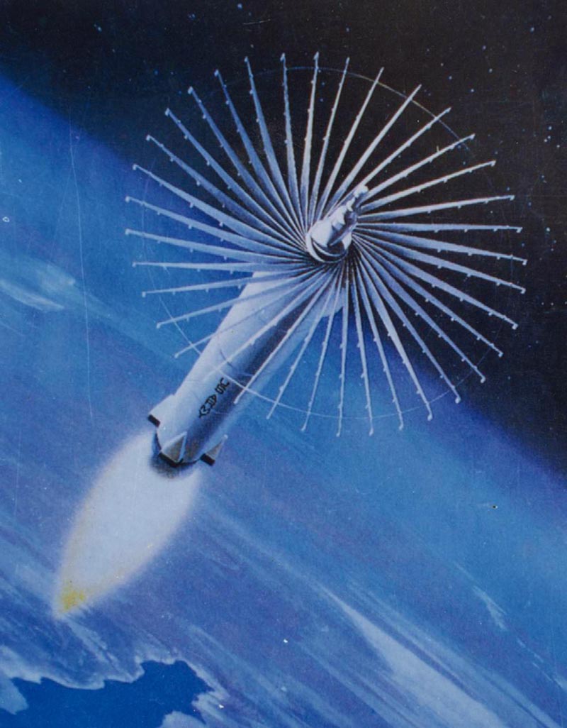 ▲ 1984年,美国用地基火箭发射的红外寻的动能拦截器,为了提高撞击效果,其头部采用雨伞骨架结构。