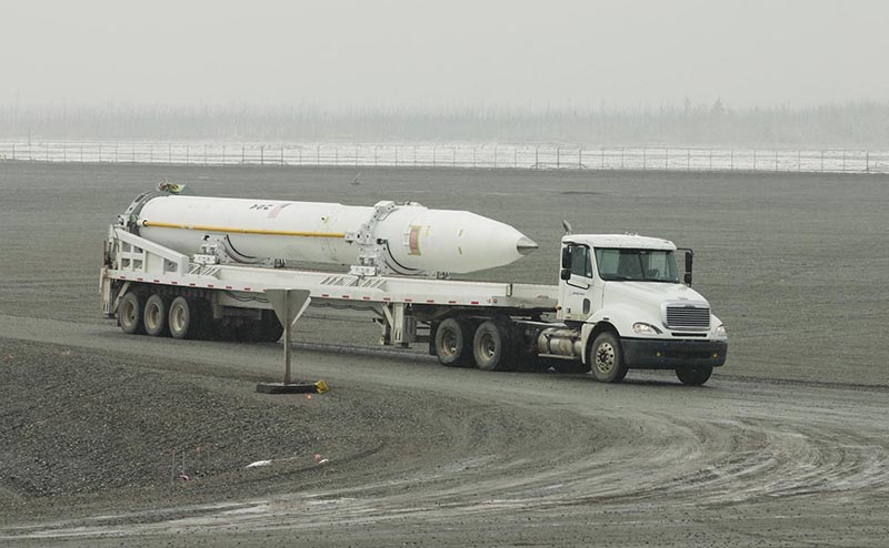 1989年,美国国防部决定在“星球大战”计划所开发的反导技术基础上,重点发展地基直接上升式动能反卫星武器系统,同时发展地基激光反卫星武器系统。1997年,地基动能反卫星武器用的动能拦截器首次进行了悬浮飞行试验。其质量为68千克,垂直速度是6.8千米/秒,是一个“自主”工作的飞行器,能检测飞行器的工作状态和传送遥测数据,自主捕获和跟踪指定的目标卫星并在目标上选择合适的碰撞瞄准点。它与三级固体助推火箭、保护罩等设备组成的动能拦截弹发射质量3 514千克,长约9.14 米,弹体直径0.61 米。