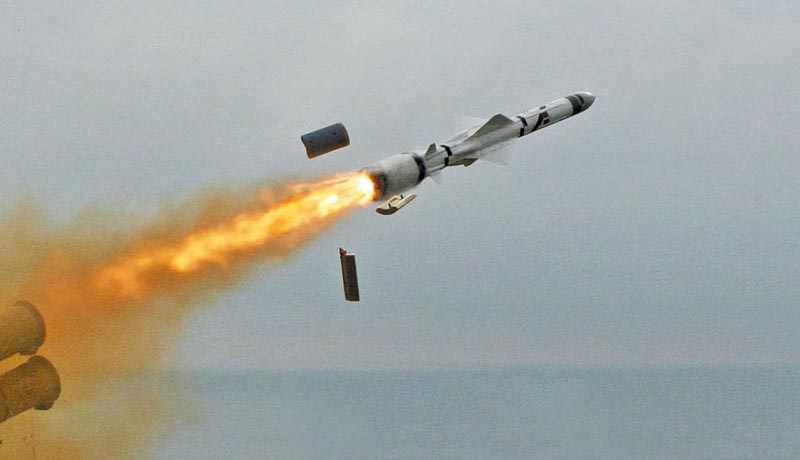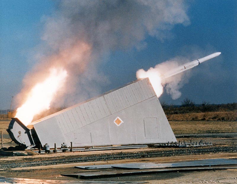 ▲ “改进型海麻雀”导弹在陆地进行试验