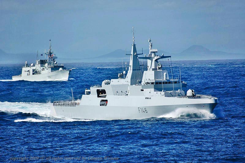 再如,南非“勇敢”级护卫舰也预留了较大的升级空间,其前部桅杆可容纳AN/SPY-1F、APAR等相控阵雷达系统的天线,后部桅杆则可加装SMART-L之类的旋转式电子扫瞄雷达,而且舰尾还预留有安装拖曳式声呐的空间。